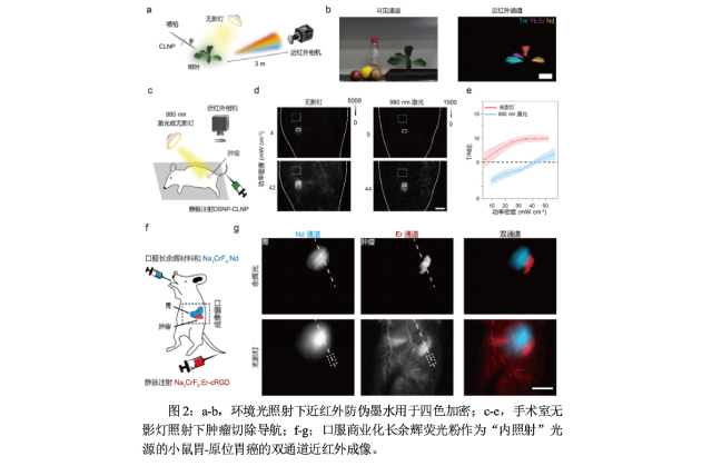 f-g;口服商業(yè)化長余輝熒光粉作為“內(nèi)照射”光源的小鼠胃-原位胃癌的雙通道近紅外成像。