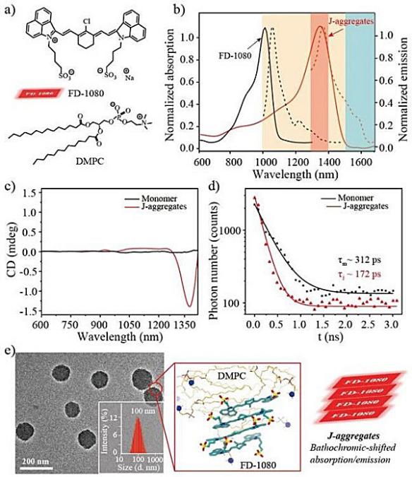 圖1. 花菁染料FD-1080單體及其 J-聚集體的性能測(cè)試。